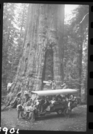 Vehicular Use. General Sherman Tree, Early auto stage at the General Sherman Tree. Ca. 1915 copied from original photo of R. E. Combs. Unknown date.