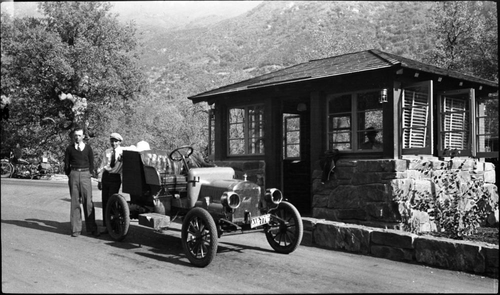 Unknown photographer, unknown date, Foothills, SNP, Vehicles and Equipment, autos at Foothills Entrance Station, Vehicular use