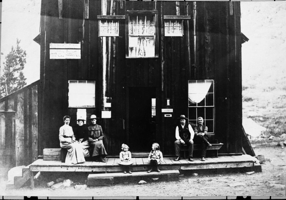 Old Mineral King Post Office. Note: This photograph is on wall in Silver City Store, Marked: "From Leslie Avery Collection - Arthur Crowley family - JD Smith Hotel 1899"