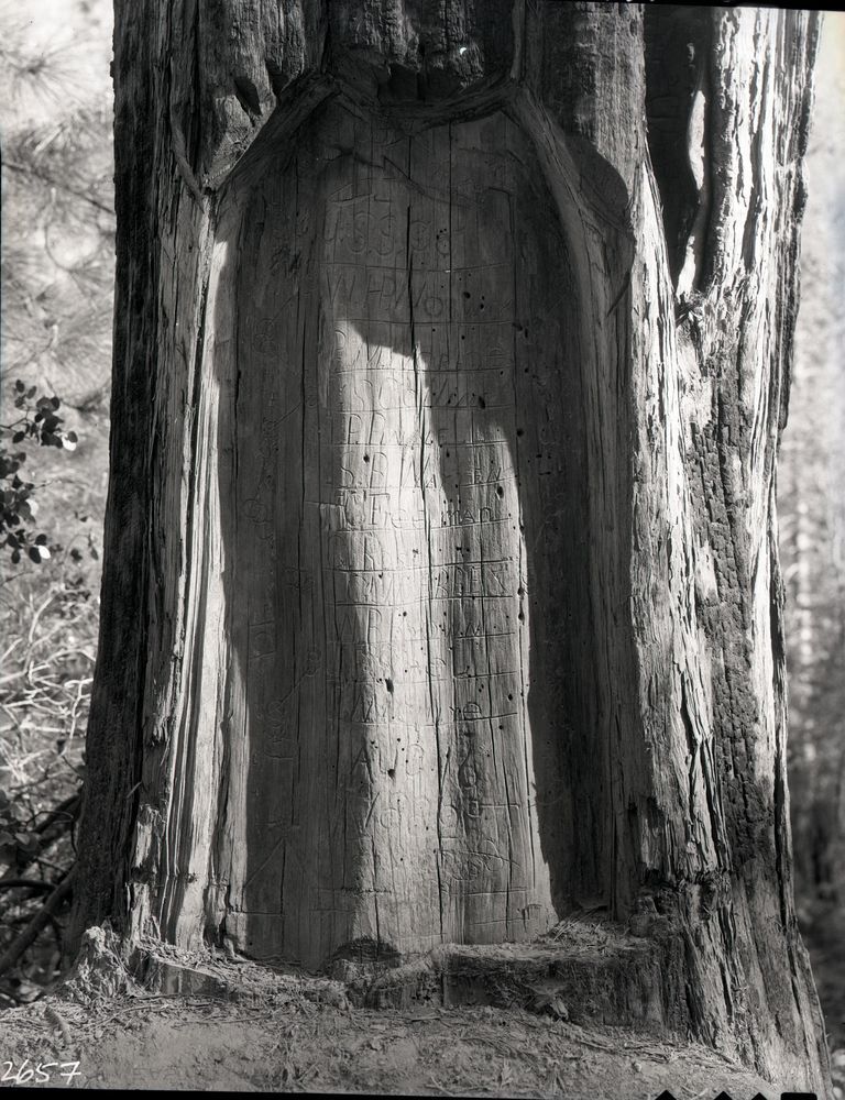 Unknown Photographer, Unknown Date, Mineral King Road, SNP, Arborglyphs, Witness Tree engravings.