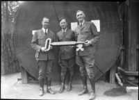 Unknown Photographer, Unknown Date, Giant forest, SNP, Dedications and Ceremonies, Key to the Park Ceremony. L to R: Horace Albright, Ford Spigelmyre, J.R. White.
