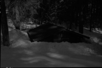 Robert Zink, Grant Grove, KCNP, Record Heavy Snows, Depth of snow around Grant Tree restroom after CDF roof clearing operation. 690327.