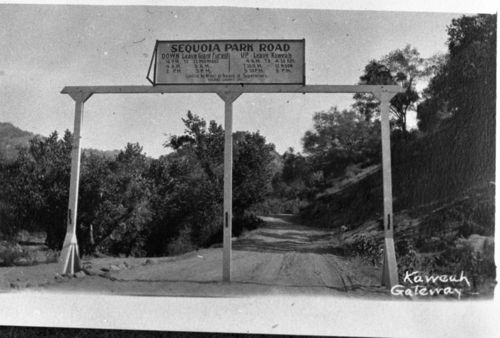 Unknown Photographer, 210000, Near Kaweah, Tulare County, Signs, Roads, first control gateway to Sequoia Park.