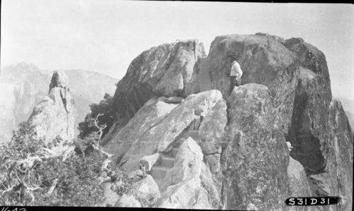 John Diehl, 310601, Moro Rock, SNP. Construction, top of trail completed. NPS Individuals. John Diehl.