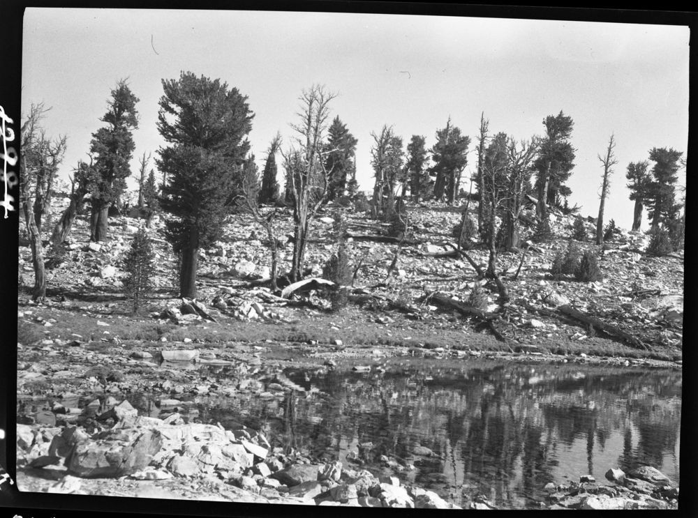 Lowell Sumner, 490726, Kaweah Basin, SNP, Misc. Lakes, one of many nameless lakes and Foxtail Pain Forest.