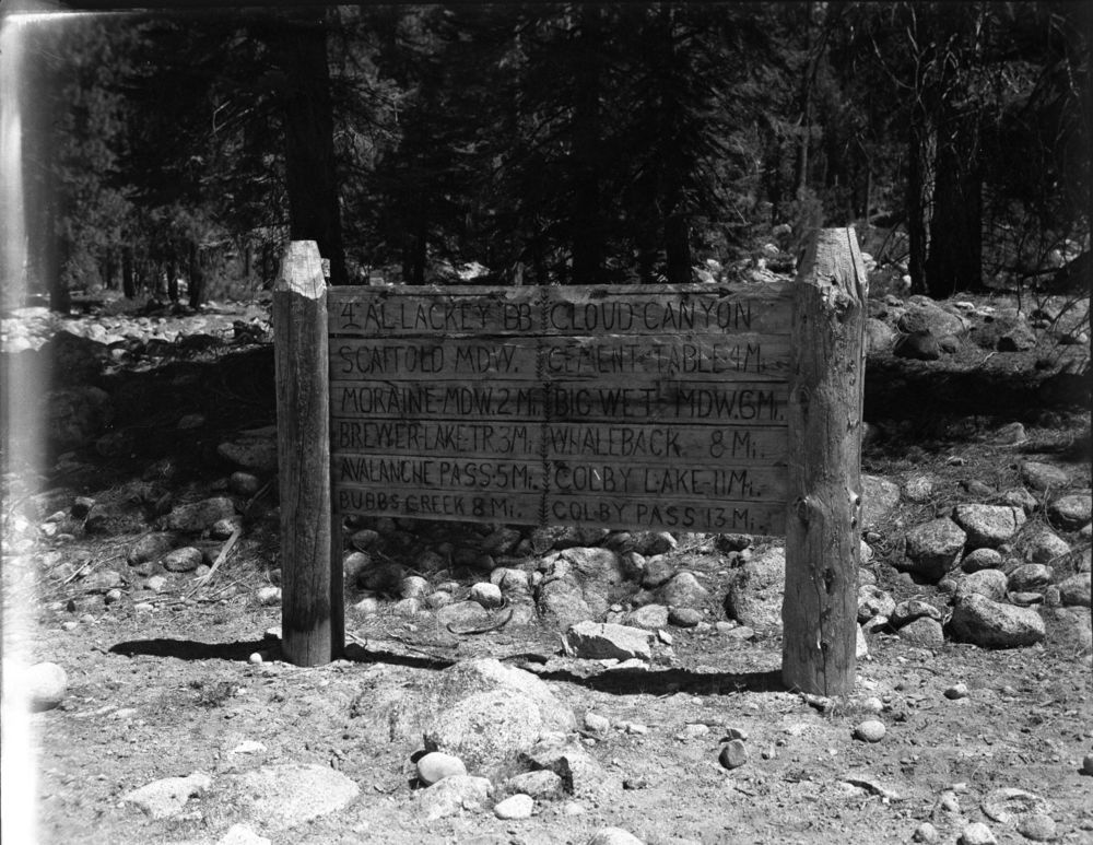 Lowell Sumner, 470822, Roaring River District, KCNP, Signs, Old hand-made trail signs at Scaffold Meadow.
