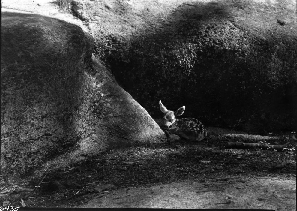 Joseph Dixon, 330702, Giant Forest, SNP, Deer, Mule Deer fawn hiding in niche in granite.