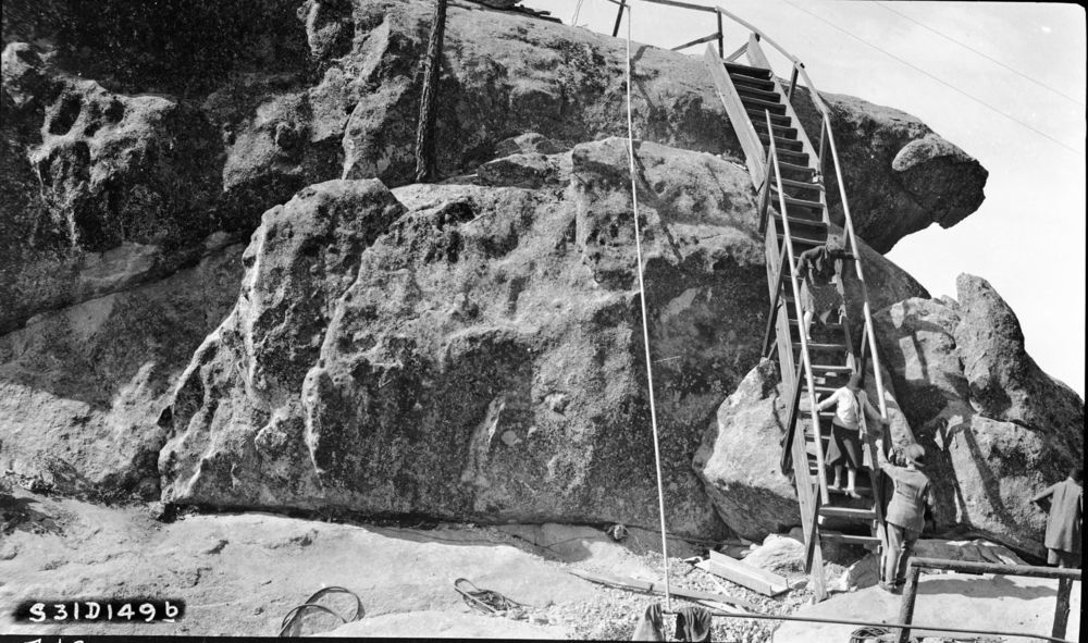 John Diehl, 310000, Moro Rock, SNP, Construction, ramp and first stairs under construction, right panel of a two panel panorama, old wooden stairs still in use panel of a two panel panorama