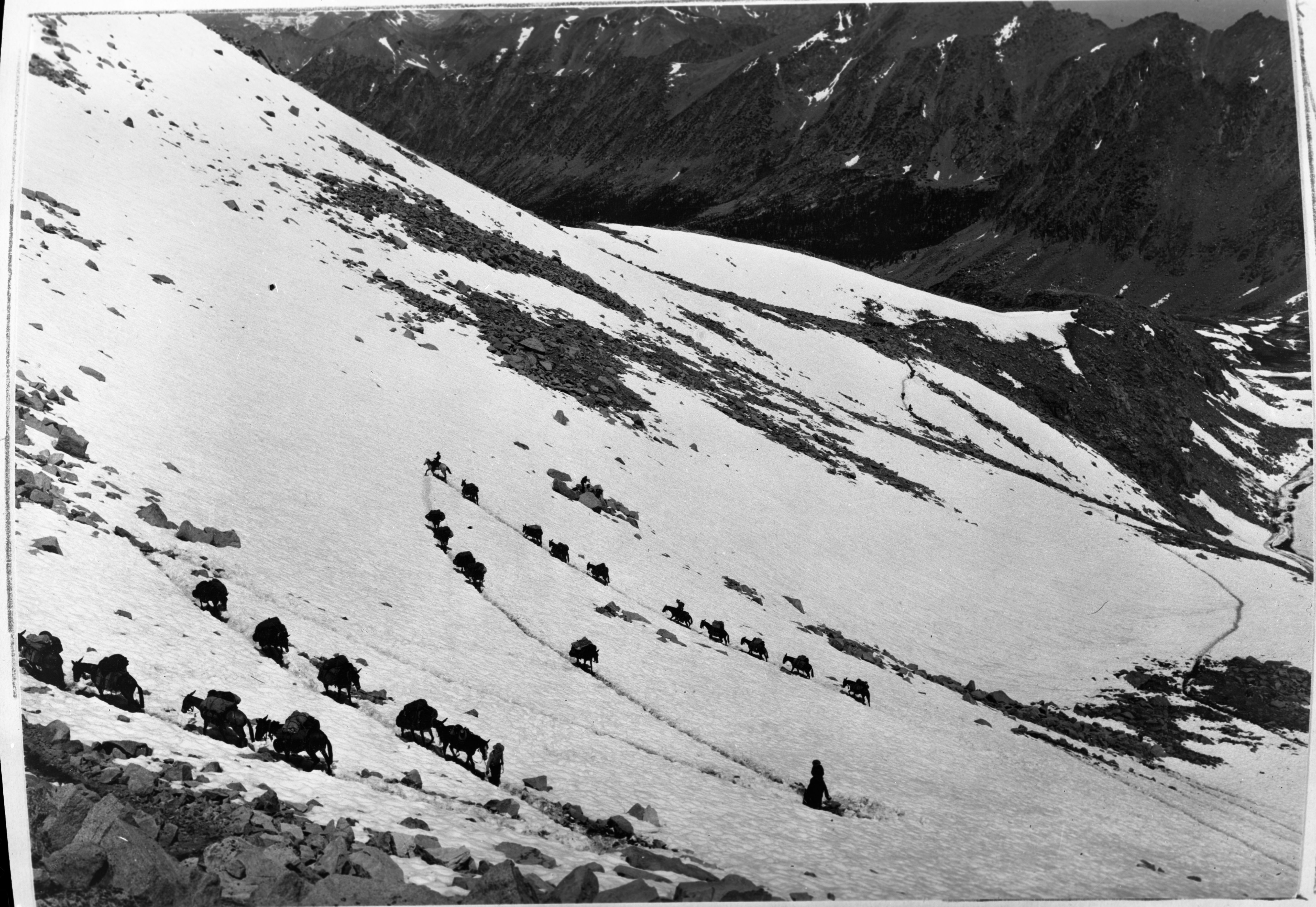 Walter Huber, 320723, Foresters Pass, KCNP, Stock Use, Pack String ascending north side of Foresters Pass.