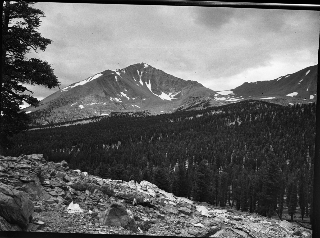 Lowell Sumner, 361009, Chagoopa Plateau, SNP, Kaweah Peaks, panorama of mountains at north end of Chagoopa Plateau. Far left panel of five panel panorama.