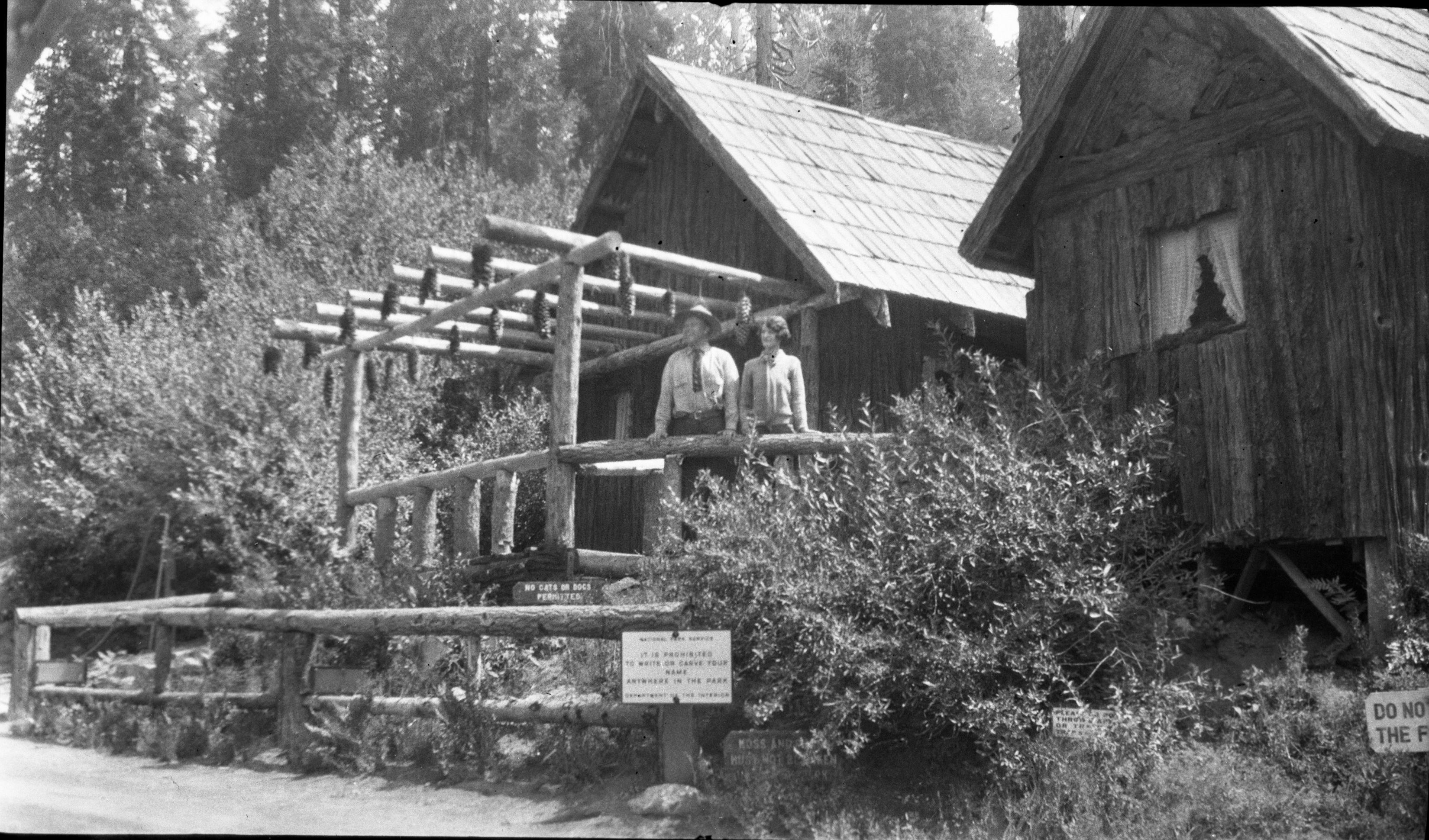 Unknown Photographer, Unknown Date, Grant Grove, KCNP, Buildings and Utilities, entrance station. Individuals unidentified.