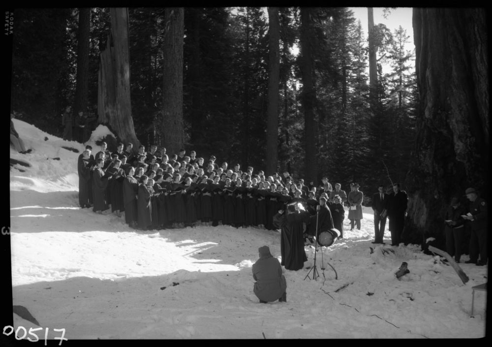 Wayne Alcorn, Grant Grove, KCNP, Nation's Christmas Tree Ceremony, 1954. Choir from Fresno. 541219.