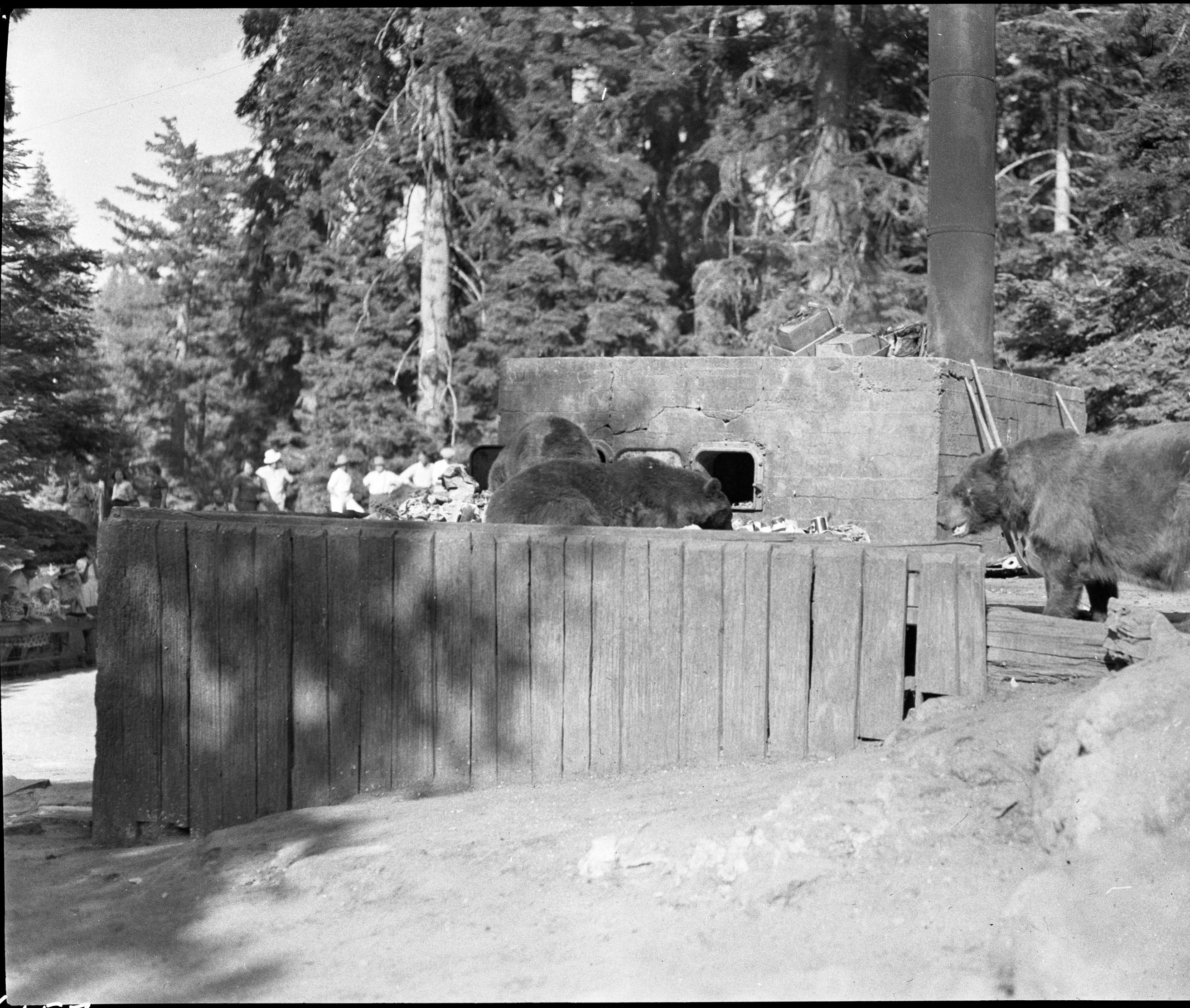 Lindley Eddy, Unknown Date, Giant Forest, SNP, Bears and Bear Damage, Feeding at bear pit, Bear Hill.