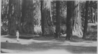 Woman by group of unknown sequoias