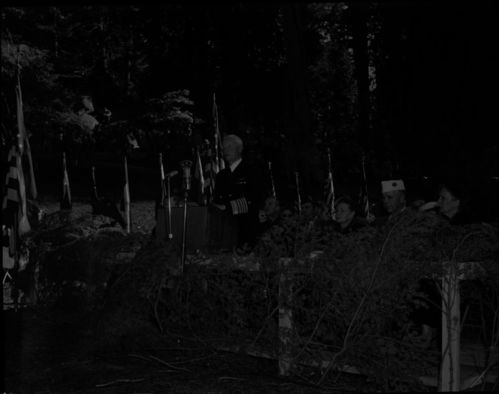 Jack Hickey, Grant Grove, KCNP, Dedications and Ceremonies, Grant Tree dedication with Admiral Chester A. Nimitz. Supt. Thomas Allen second from left. 561111.