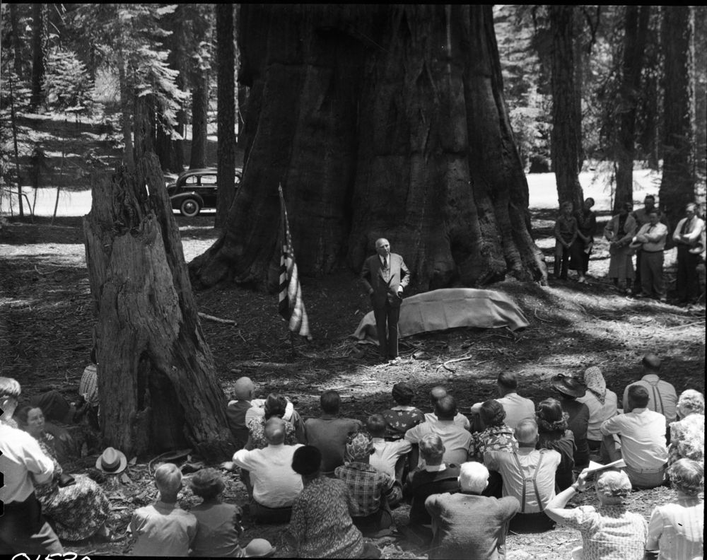 Unknown Photographer, 380626, Giant Forest, SNP, Dedications and Ceremonies, Susan B. Anthony Tree Dedication. Speaker unidentified.