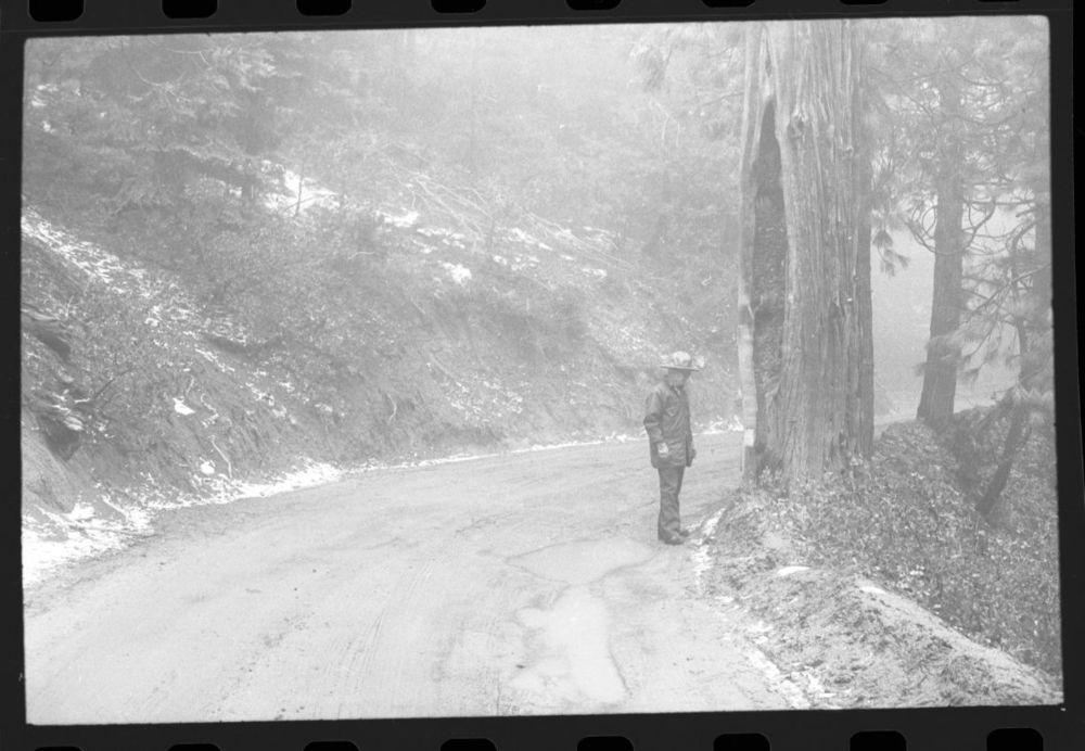 Bill Tweed, Mineral King Road, SNP, Aborglyphs. Witness Tree. J. Hartzell in photo. 770516