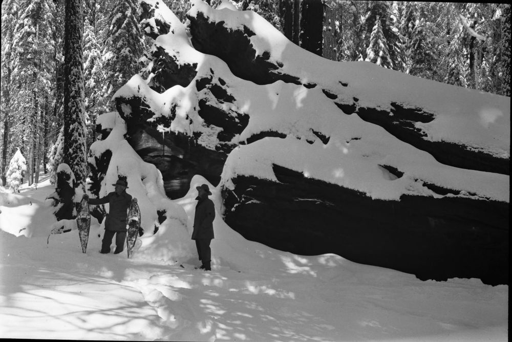 Frank R. Oberhansley, 420100, Giant Forest, SNP, Fallen Giant Sequoias, Puzzle Corner Tree. Ford Spiegelmyre on right.