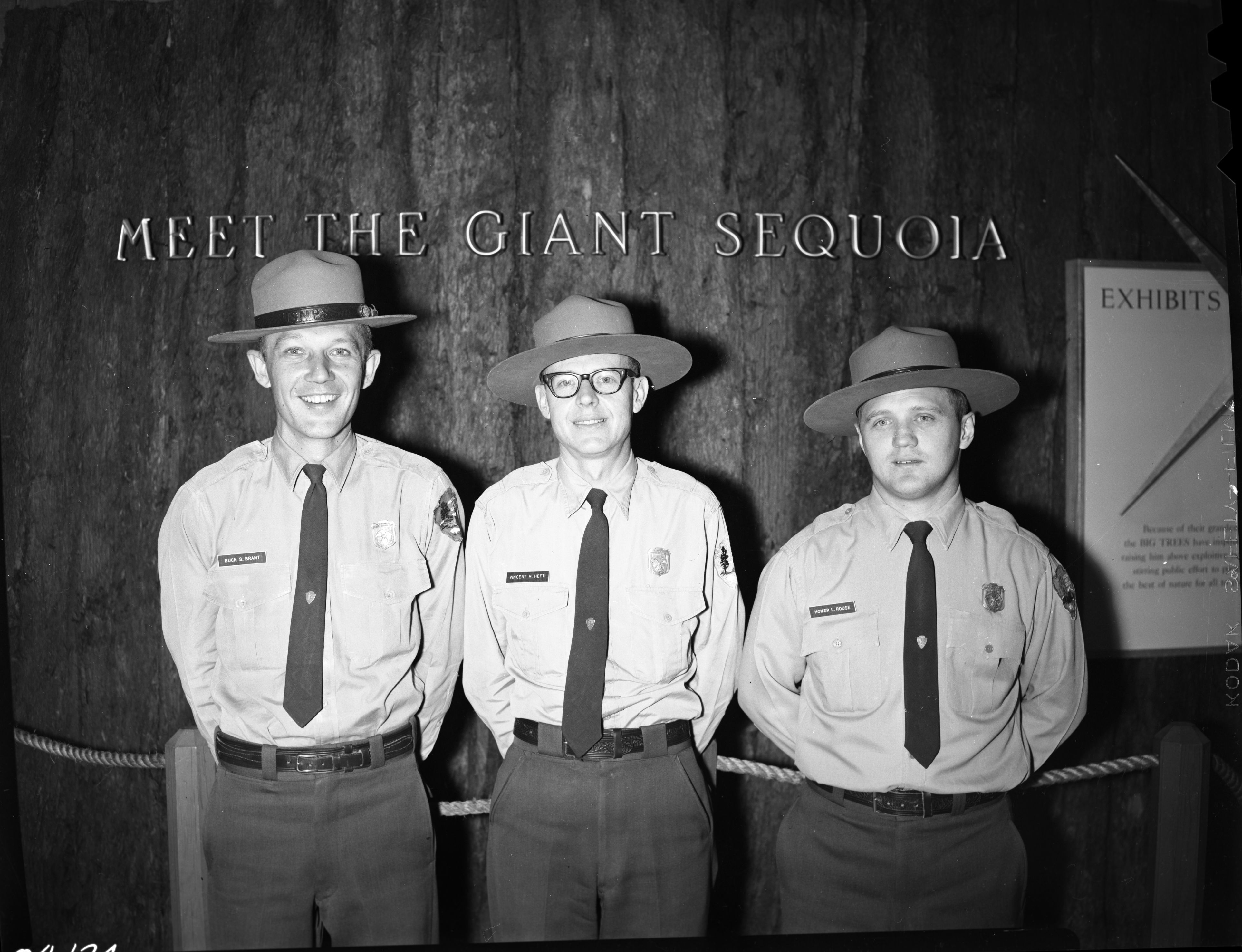 Jim Howell, 650600, Grant Grove, KCNP, NPS Groups, Ranger Buck Brant (left) District Ranger Vince Hefti and Ranger Homer Rouge (right).