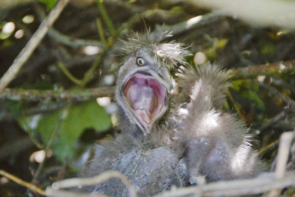 Black-crowned night-heron (Nycticorax nycticorax) chicks on Alcatraz Island during the breeding season