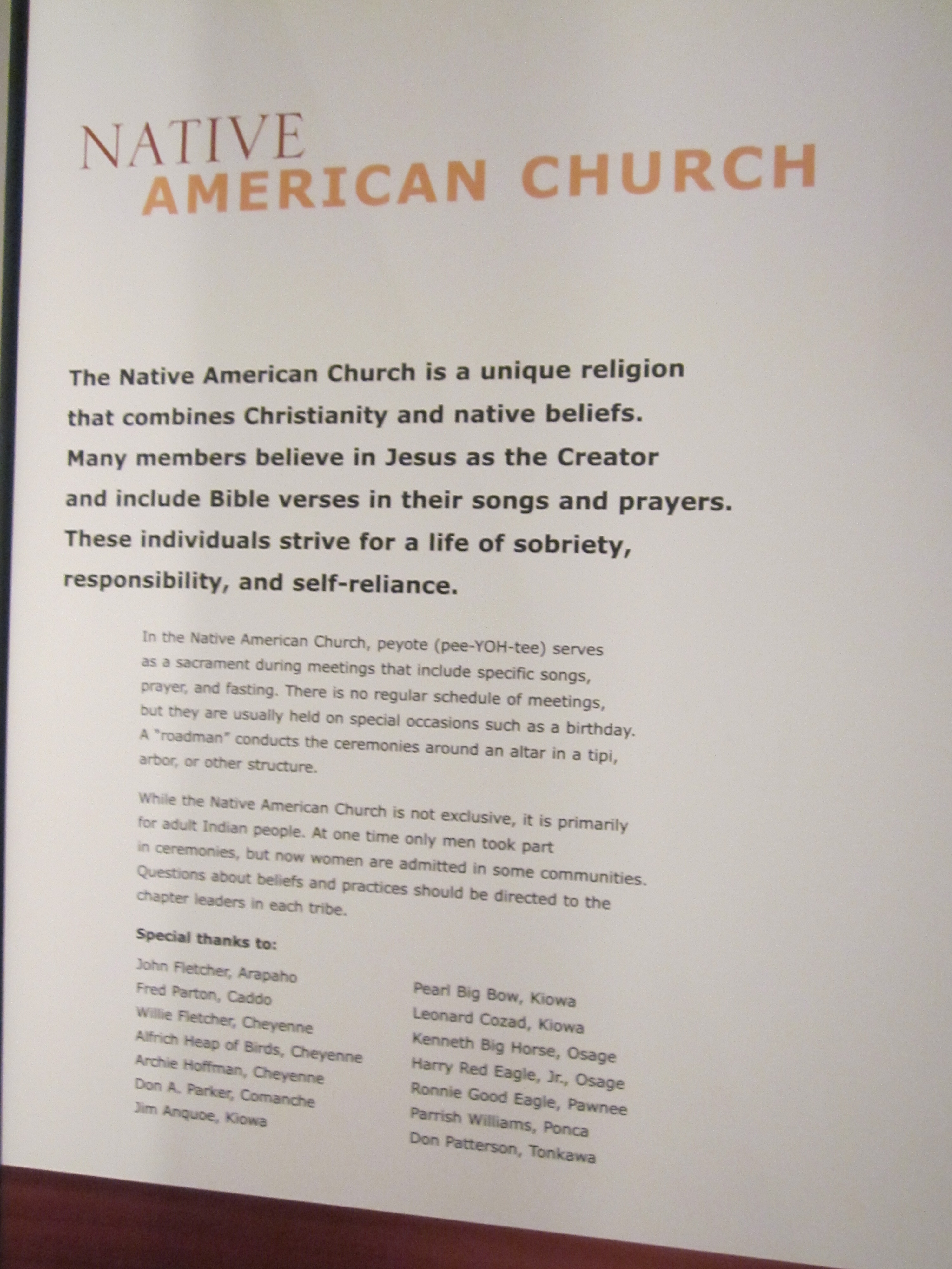 Native American Church exhibit at the Oklahoma History Center in Oklahoma City, Oklahoma