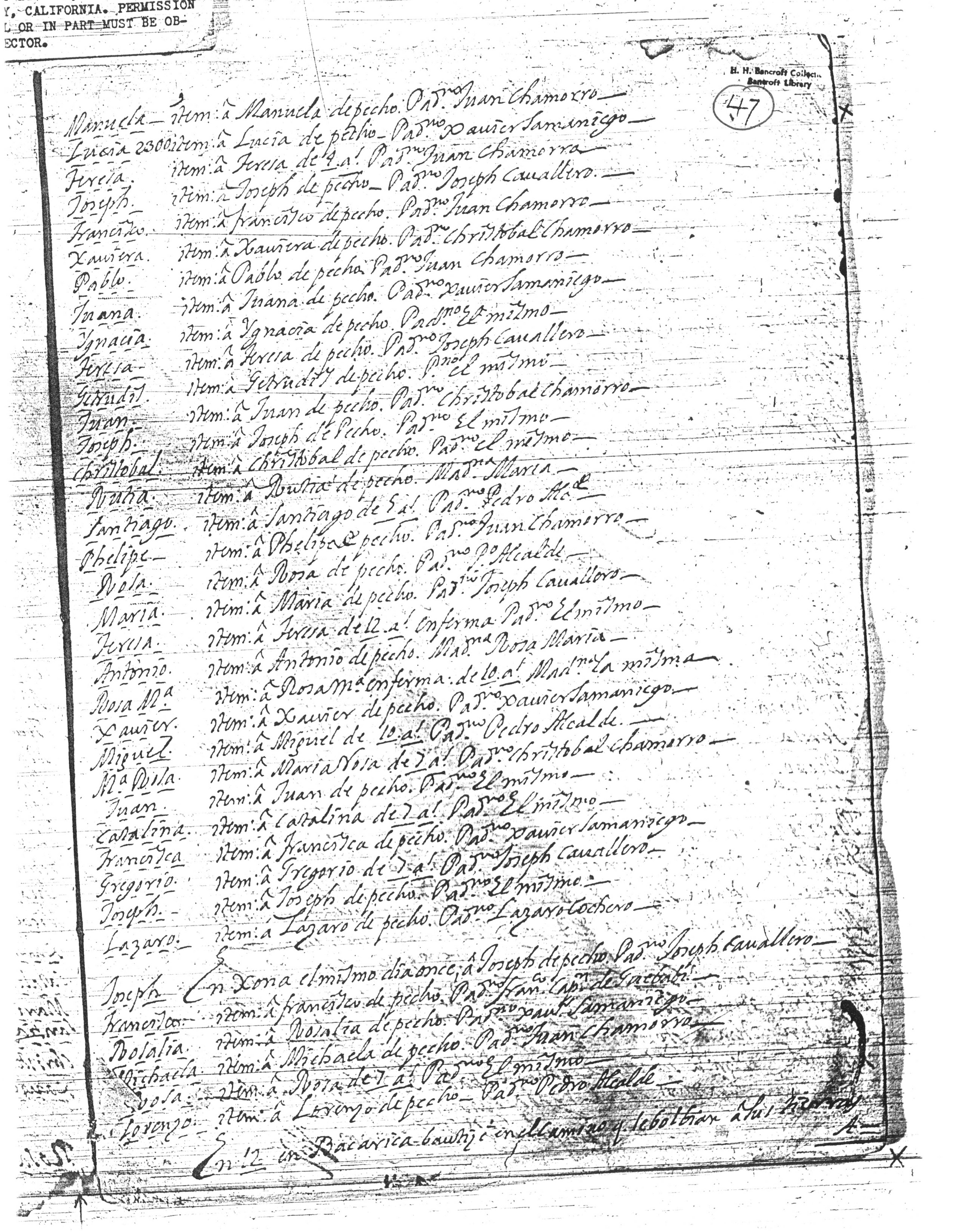 Page From a TUMA Mission Record Book