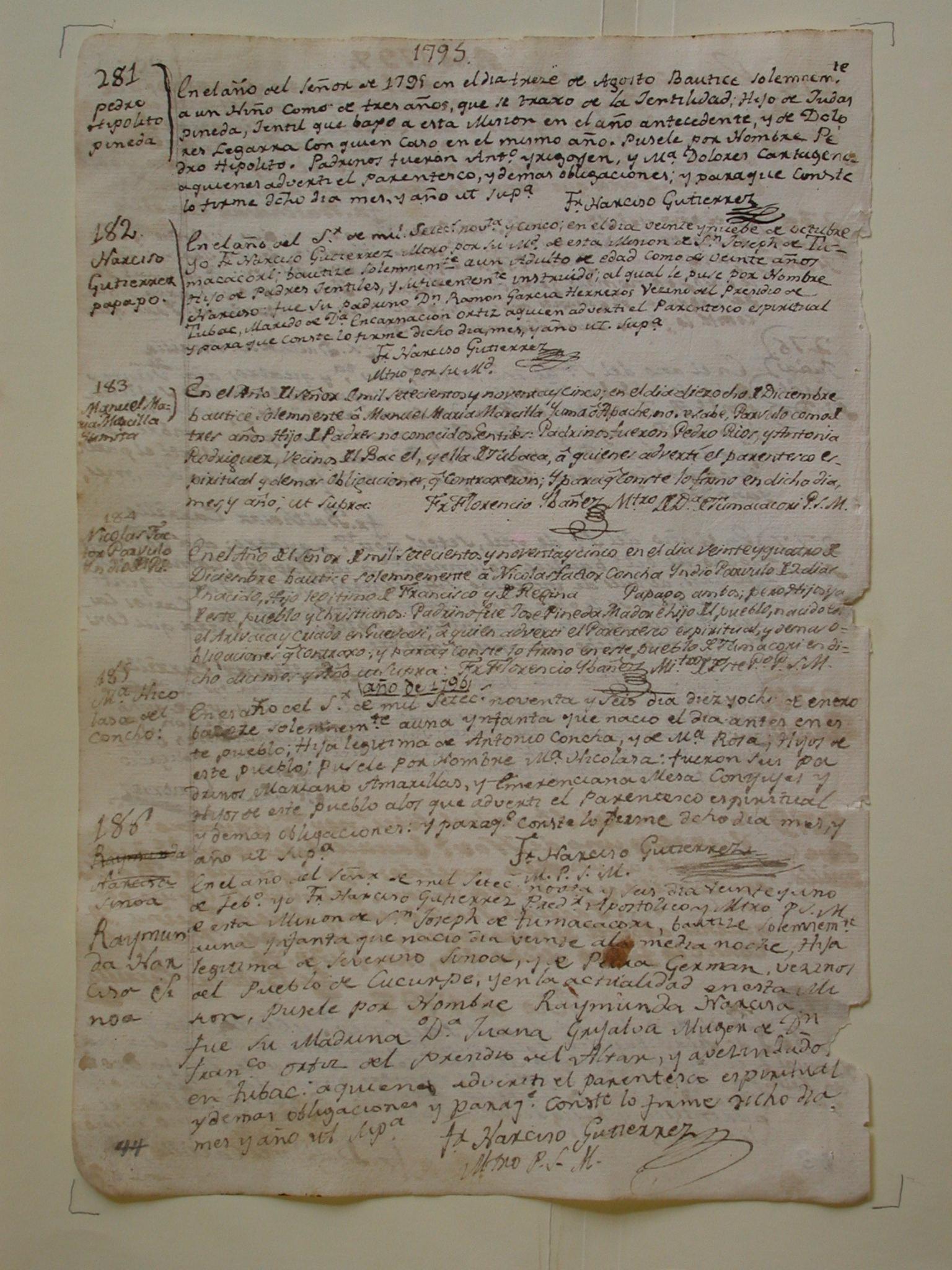Baptism recorded on 01/18/1796 in Tumacácori
