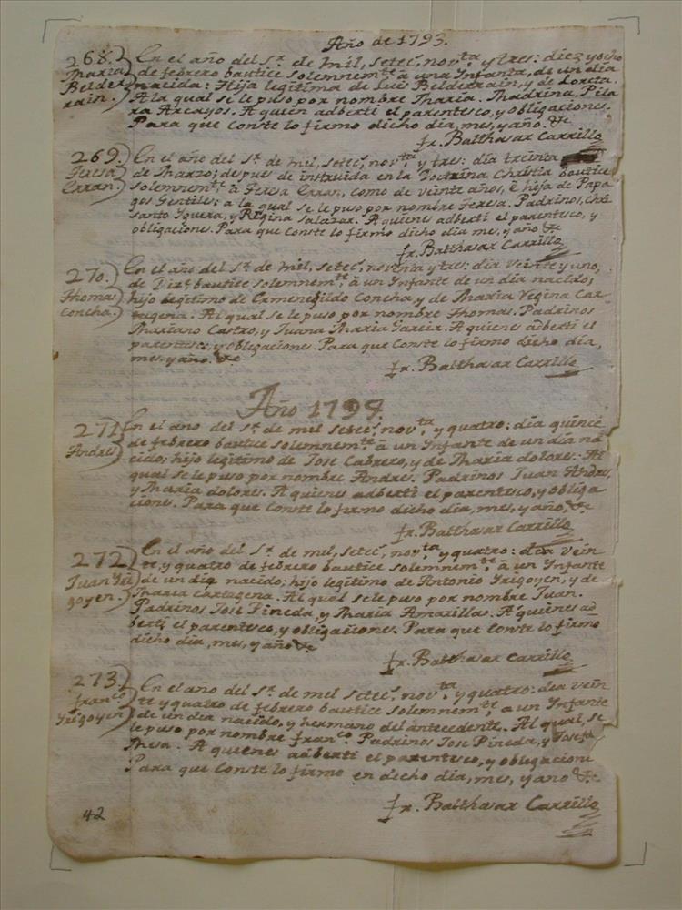 Tumacácori Mission Record, page 42 || No godfather is mentioned in this record, only the godmother.