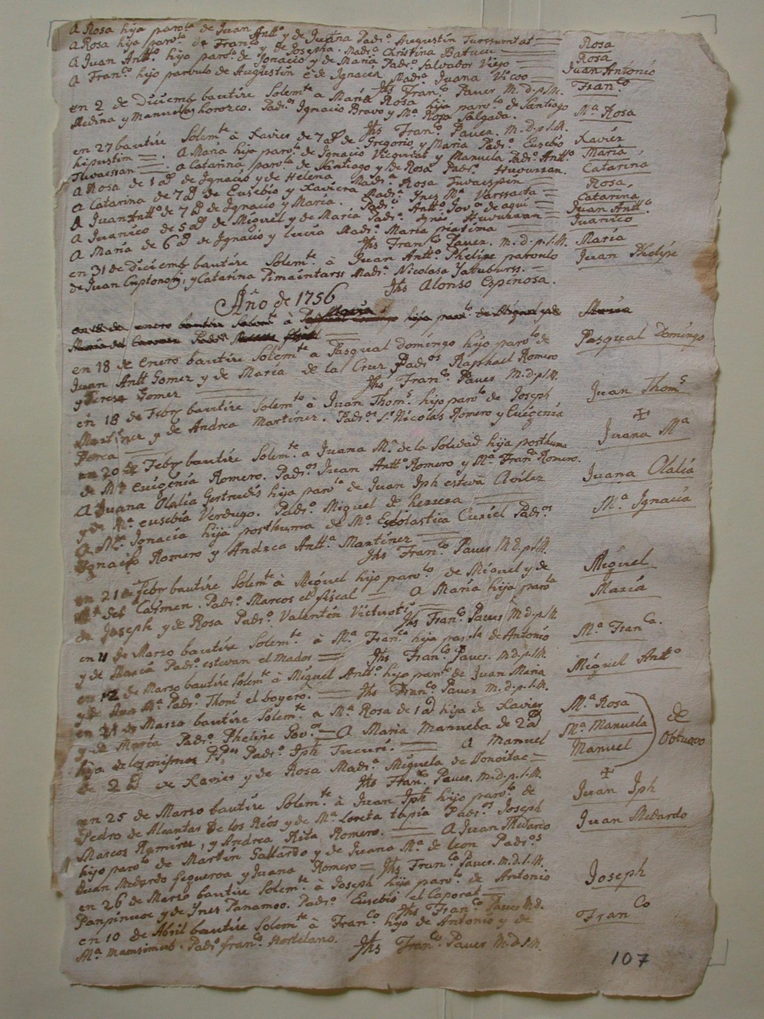 Guevavi Mission Record, page 107