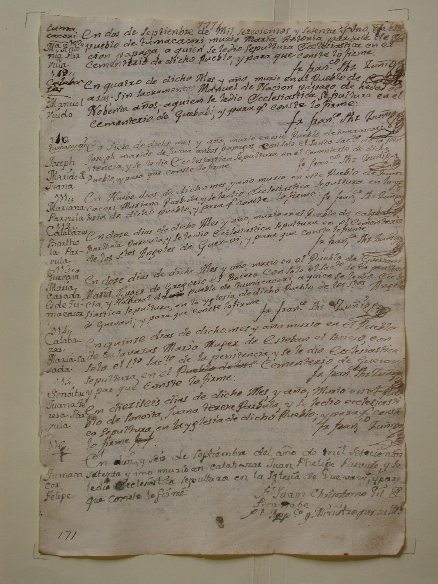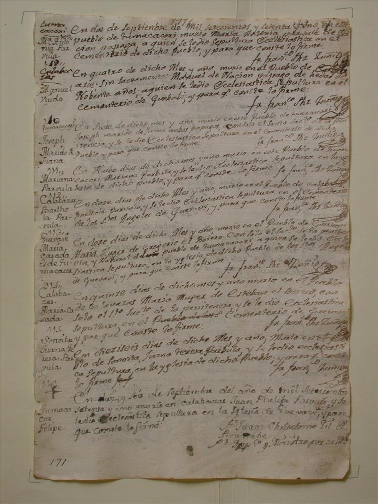 Burial recorded on 09/02/1771 in Tumacácori