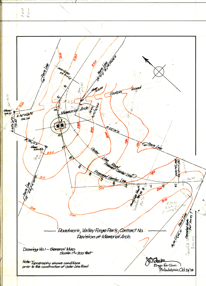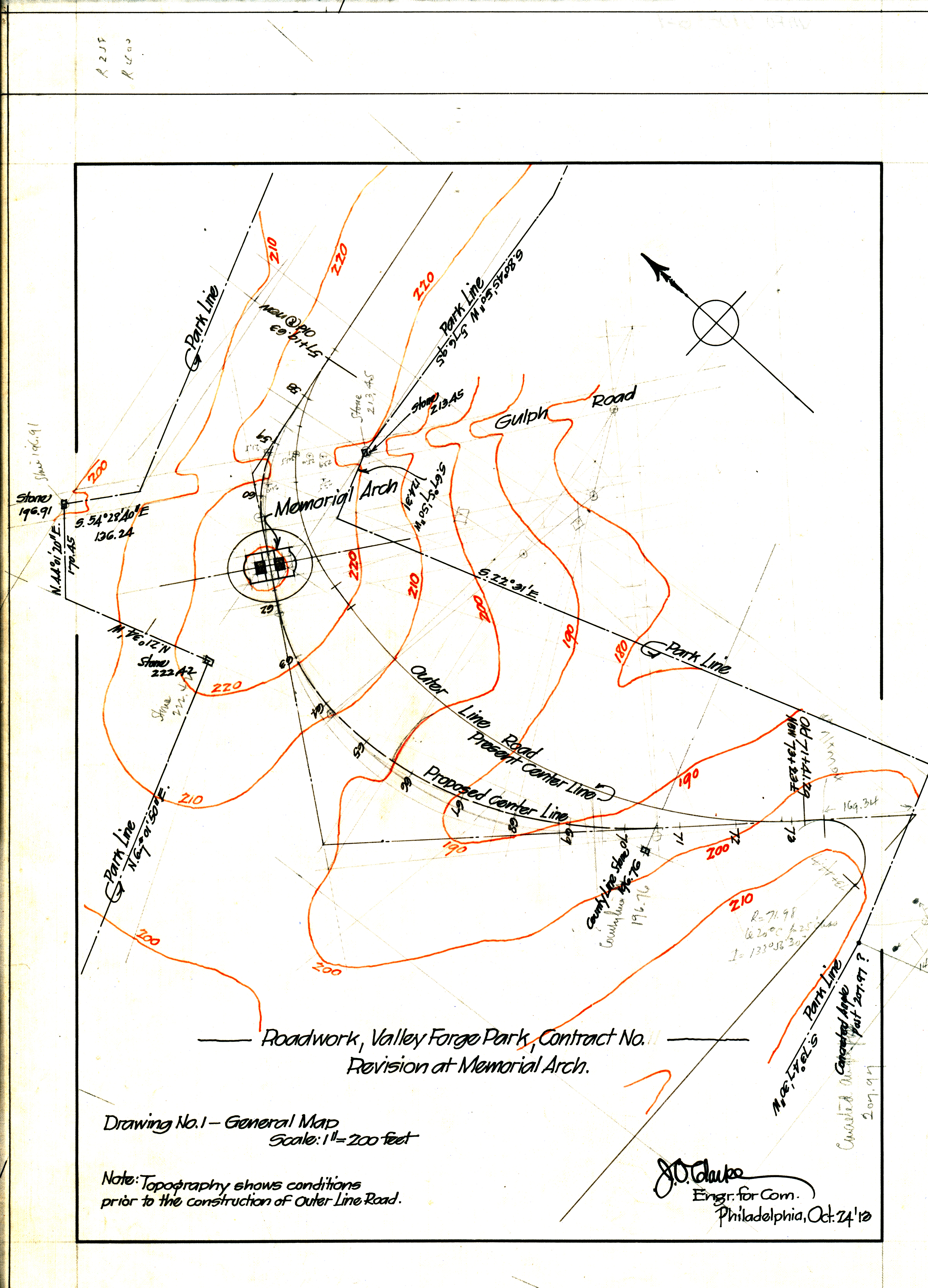 Roadwork, Valley Forge Park, Contract No. 11, Revision at Memorial Arch, Drawing No. 1, General Map