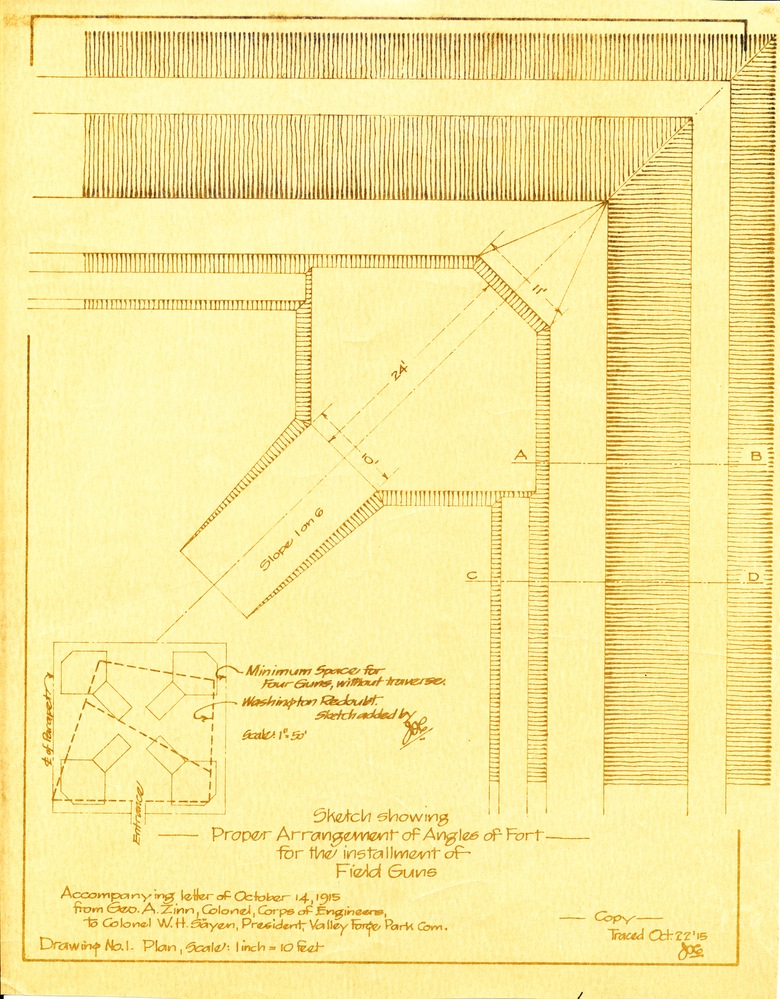 Sketch Showing Proper Arrangement of Angles of Fort for the Installment of Field Guns, Drawing No. 1, Plan, Scale