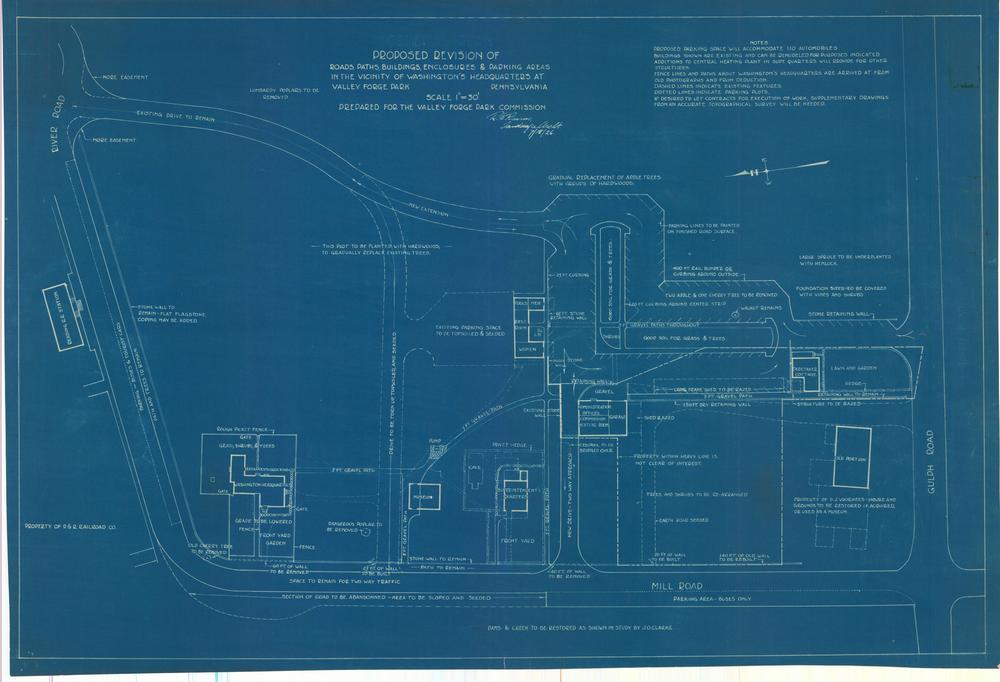 Sketch Plan, Revision of Roads, paths, Parking Areas, Enclosures & Buildings at Washington's Headquarters, Valley Forge Park