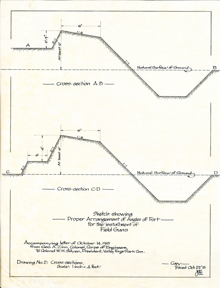 Sketch Showing Proper Arrangement of Angles of Fort for the Installment of Field Guns, Drawing No. 2, Cross-sections