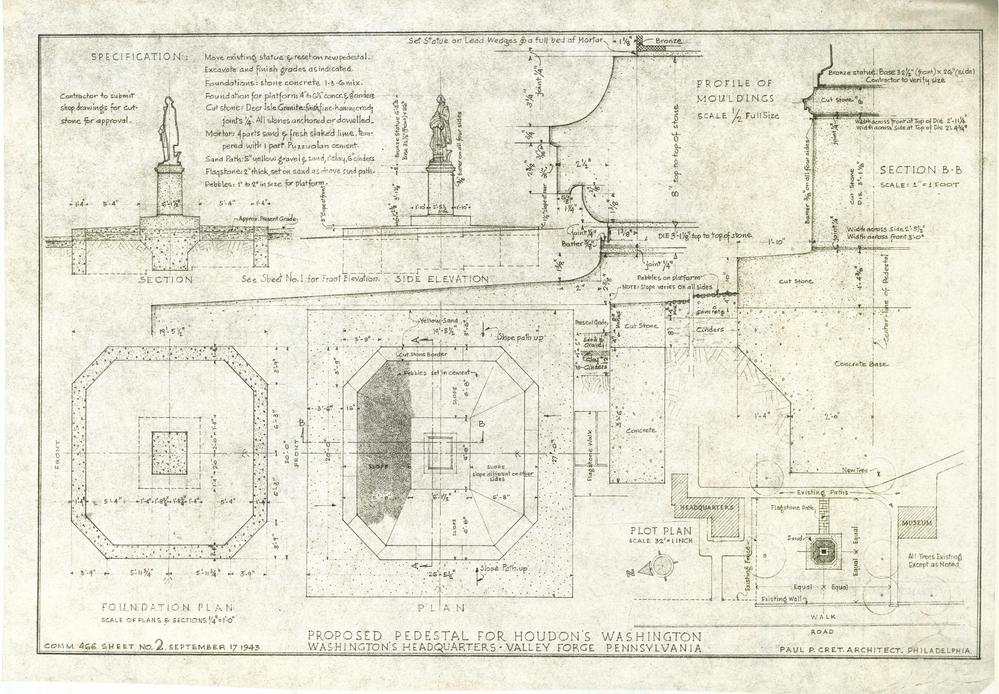 Proposed Pedestal for Houdon's Washington, Washington's Headquarters, Valley Forge Park, PA: Sheet 2