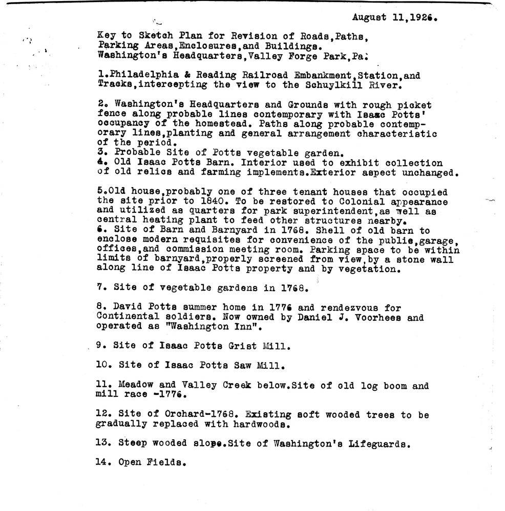 Sketch Plan, Revision of Roads, paths, Parking Areas, Enclosures & Buildings at Washington's Headquarters, Valley Forge Park