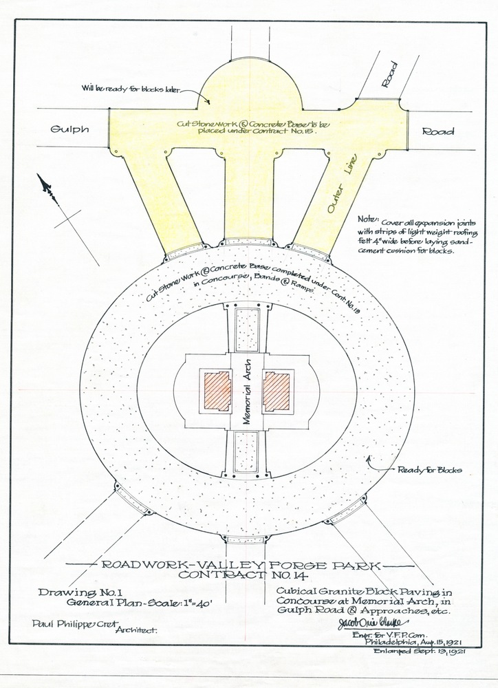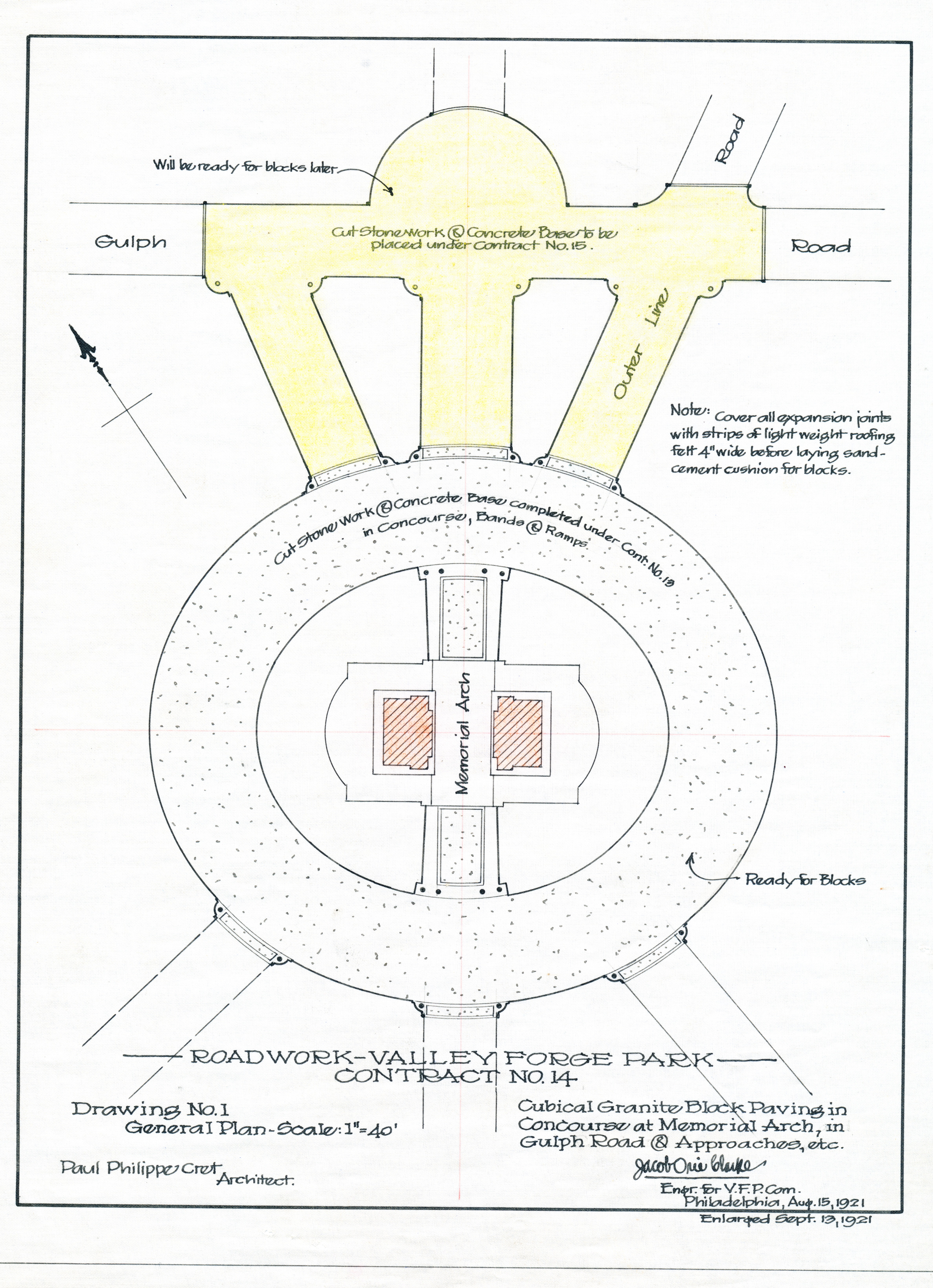 Roadwork, Valley Forge Park, Contract No. 11, Revision at Memorial Arch, Drawing No. 2, Detail Map, Arch and Vicinity