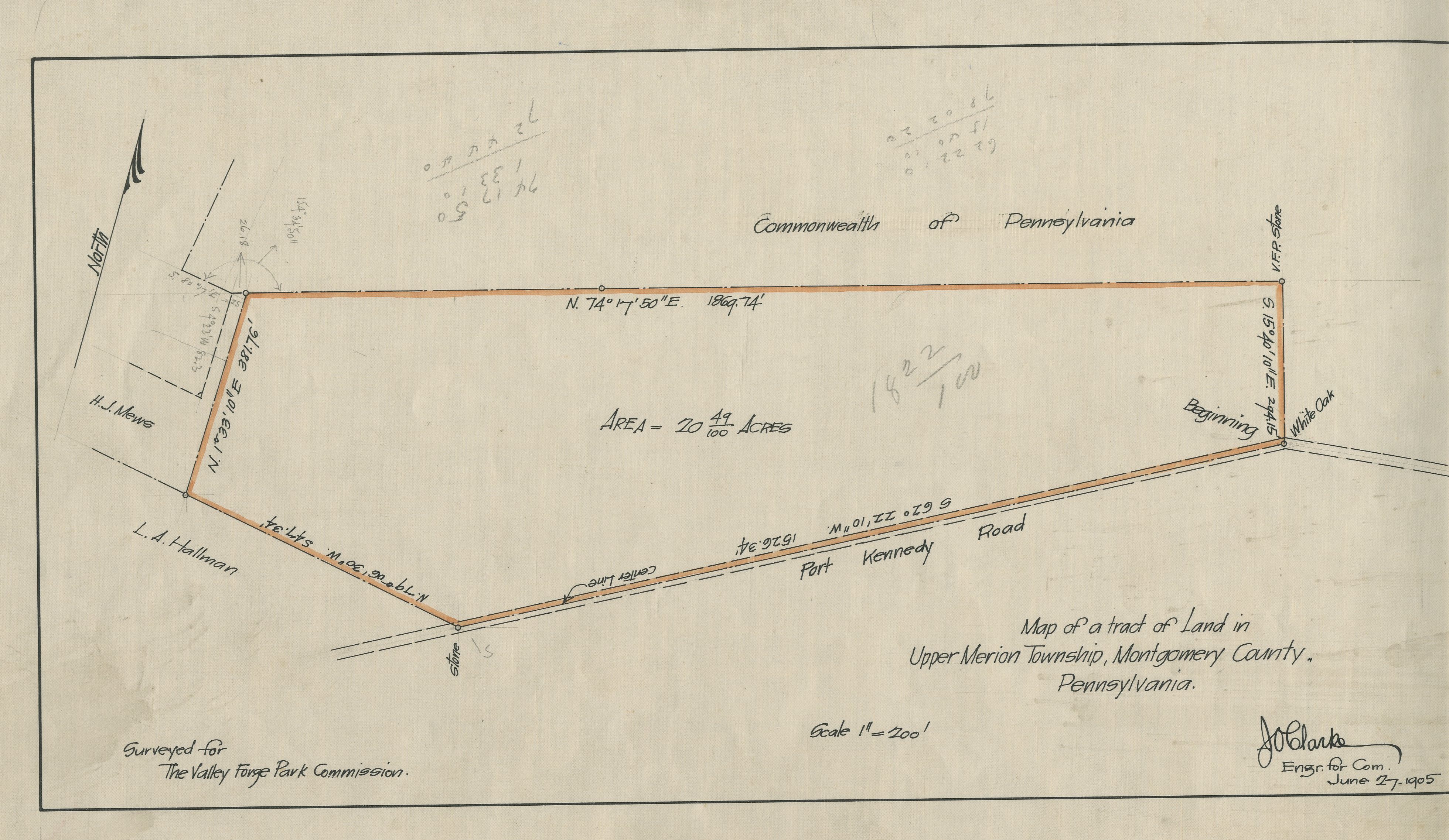 Map of a tract of Land in Upper Merion Township, Montogery County, Pennsylvania. Land Tract Port Kennedy Road