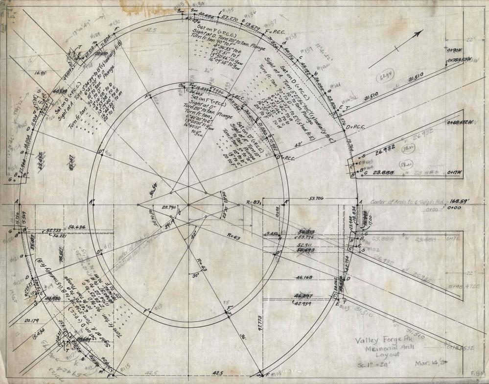 Layout for Curbing around the Memorial Arch in Valley Forge Park