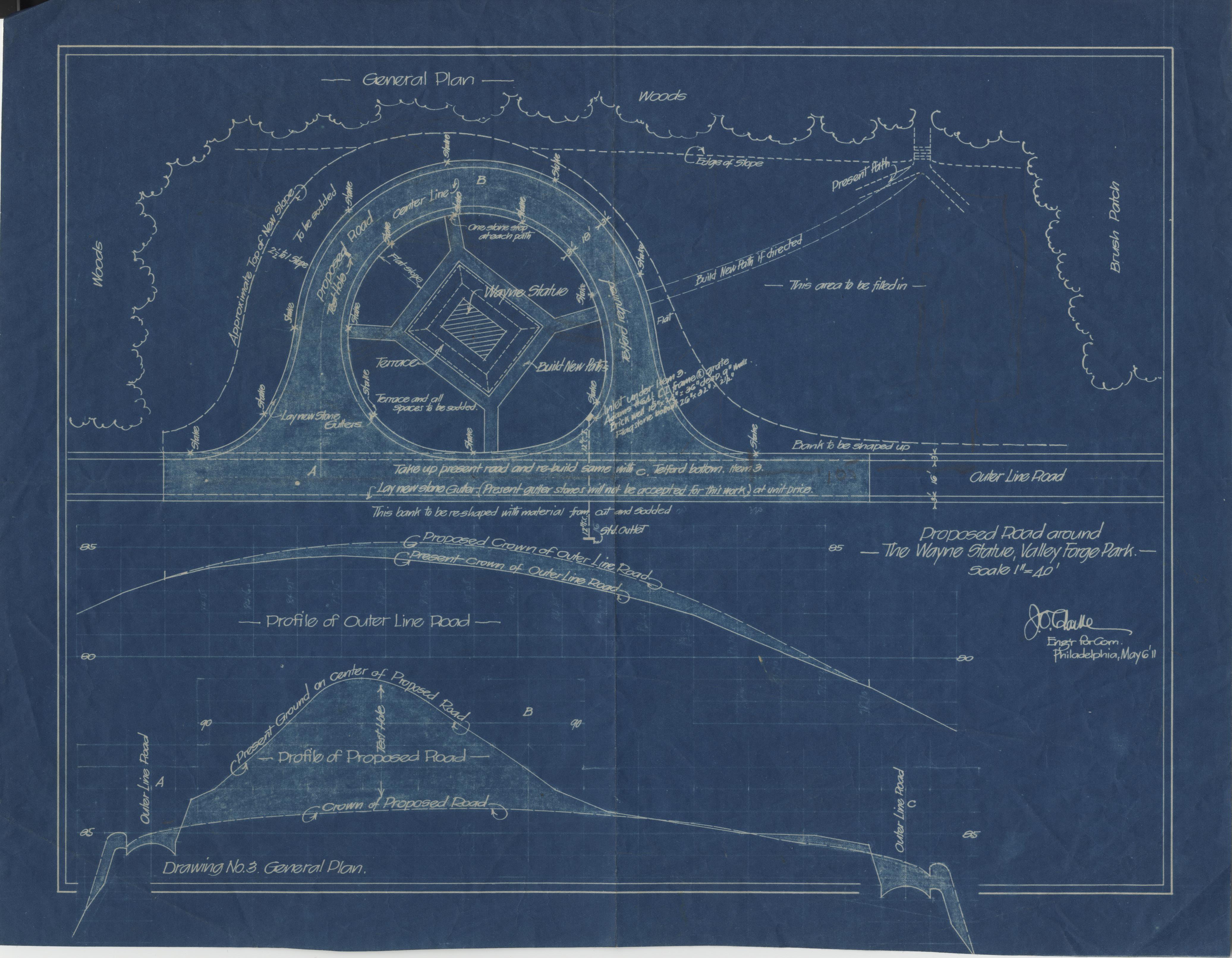 Proposed Road around the Wayne Statue, Valley Forge Park, Drawing No. 3, General Plan