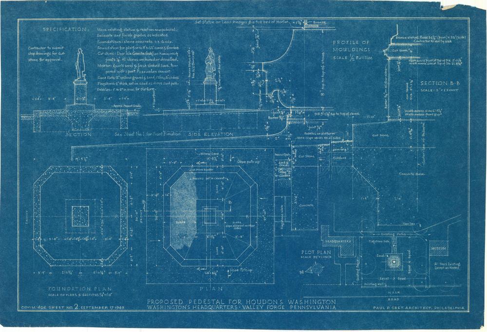 Relocation of Houdon Statue of George Washington, Valley Forge Park, Valley Forge, PA, Plans, Elevation, Section, & Details: Sheet 2
