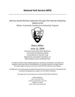 Glenn was also involved in the battle at Tinian. They took a little island north of Okinawa, called Iheya Shima. There were no Japanese troops there at all. Then they went as a regimental combat team, landed on Okinawa to take over the lines at Churey [sp?] Castle and then went and finished the island there; General Buckner was killed in our forward observation posts. They were there for six weeks. Glenn remembers Tinian as having horrible black flies. He managed to sleep through the bonzai attack, as he was in an exhausted while there. The battle there was nine days, although they stayed for several weeks. They then came back to Saipan, established camp over Magacin Bay and they were there until we went to Okinawa.