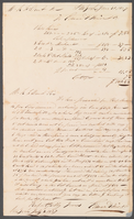 On front of document: "M. R.P. Hunt Dr New York June 30 1827 To Edward G. Faile & Co 1 [illegible] [Line?] 24% 22=225=[bel?] 2/ - @ 3 1/4 - $7.56 Cash as follows [illegible] 8 [illegible] #2 [Mackarel?] -- $4 5/8 - 37 2 D [#] 3 [Mackarel?] -- 3 3/8 - 6.75 2 [Carts?] 8d Cut Nails 233 226 --- 459 [Carts?] 4/ -- 6 1/2 - 30.33 2 [Carts?] - 4d [Cut Nails] 135 147 ---- 282 - C7 -- [illegible]17.76 [illegible] for [cash?] -- 69 ------ 19.05 Cartage --- 75 ------- $101.44 Mr R.P. Hunt Sir We have forwarded per Sloop Minerva as per bill annexed including six boxes glass from [A.] & W Underhill, for which they would make no deduction for cash; they were therefore placed to your acct by them – 8d cut nails were not be found in market with any of the dealers excepting [Rusco?] Brothers – and they only had 6 kegs – and as there price is over what you usually pay we have sent you but two kegs – Connecticut mess Shad were not to be had at any price – but it is promised that they will be in market soon. Since you were here we have received [ illegible ] 38 Hunts, & 44 Dr Lees brand flour – we have retailed 21 of Hunts at $5 balance $4 7/8 and the Lees $4 ¾ - Also on 29th 40 bbls Hunts brand [cents] 14 of which have been sold at 38 and the balance at 37/6 (one excellent [deal?] ) There arrived this morning 23 of Hunts & 75 of Lees brand. the former was sold at $4 5/8 and as the latter is the poorest you have sent us it is uncertain what it will bring – as the best brands ar offered at $4 3/8 -- As the weather is extremely hot and no prospect of our [illegible] improvement you may do better by keeping it back for the present— Respectfully Yours Edward G. Faile & Co New York July 3 1827” On back of document: "E.G. Faile & Co Bill & Letter 6mo30th 1827"