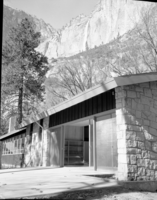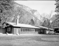 Early day school house in Yosemite Valley. Copied from old photos. This text on back of 1882 photo og Yos. School (YM 2009 = RL-02,792). Original in Yosemite Musuem.