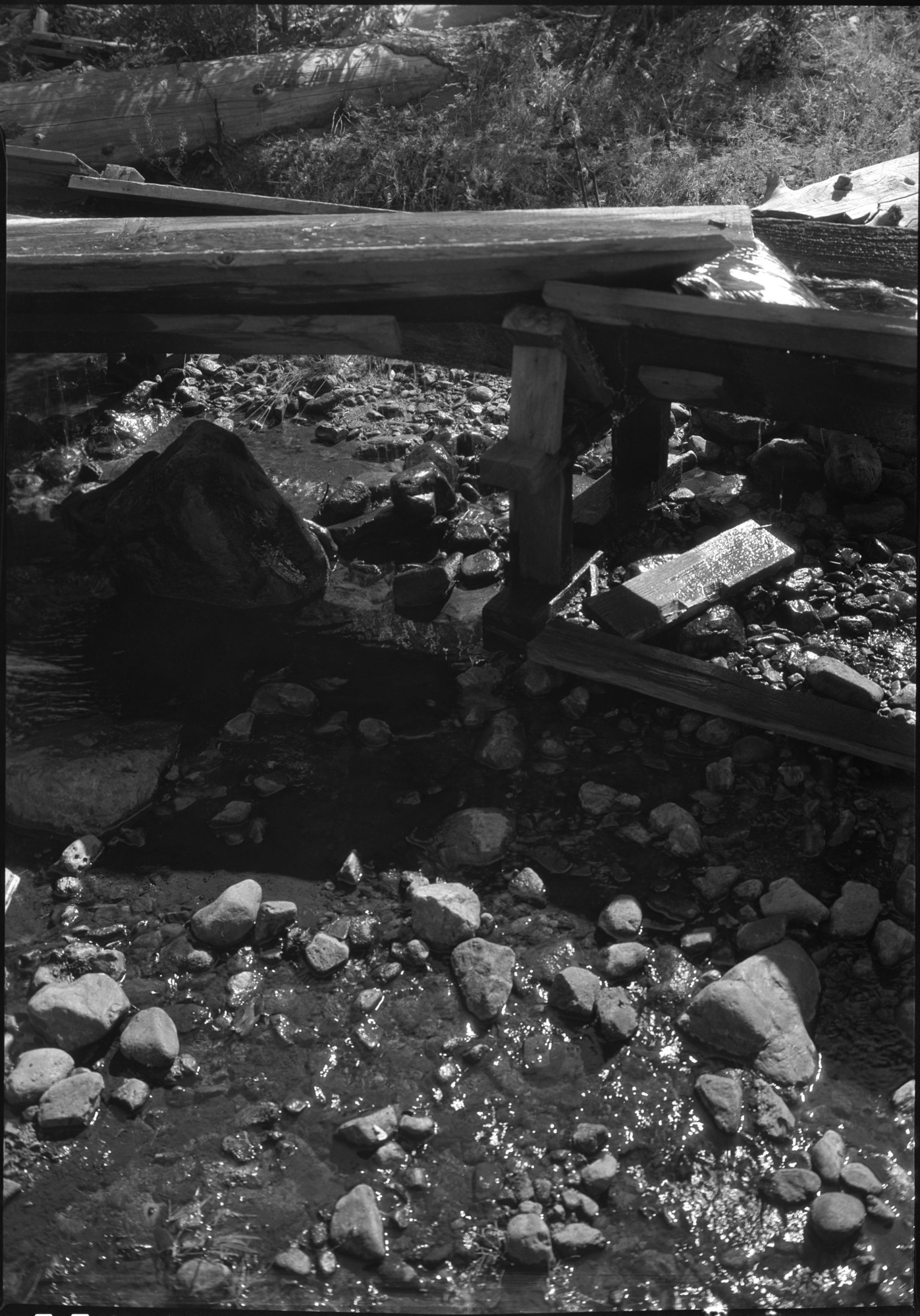Sugar Pine Lumber Co. flume at Raynor Creek, showing leaky condition.