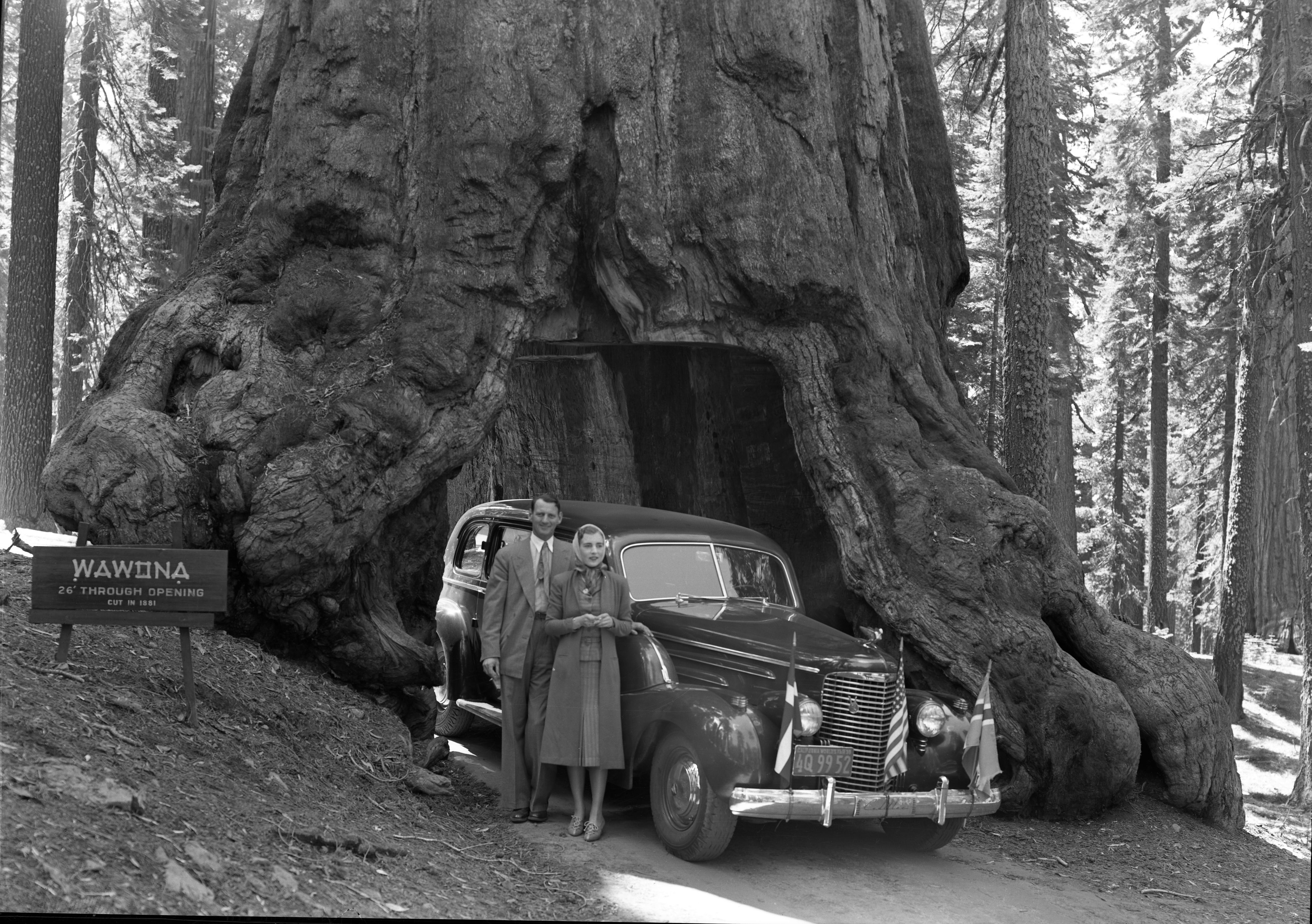 Col. Eddie Eagen, Mrs. Eagen & Jr. Park Naturalist Wayne Bryant in the Wawona tree.