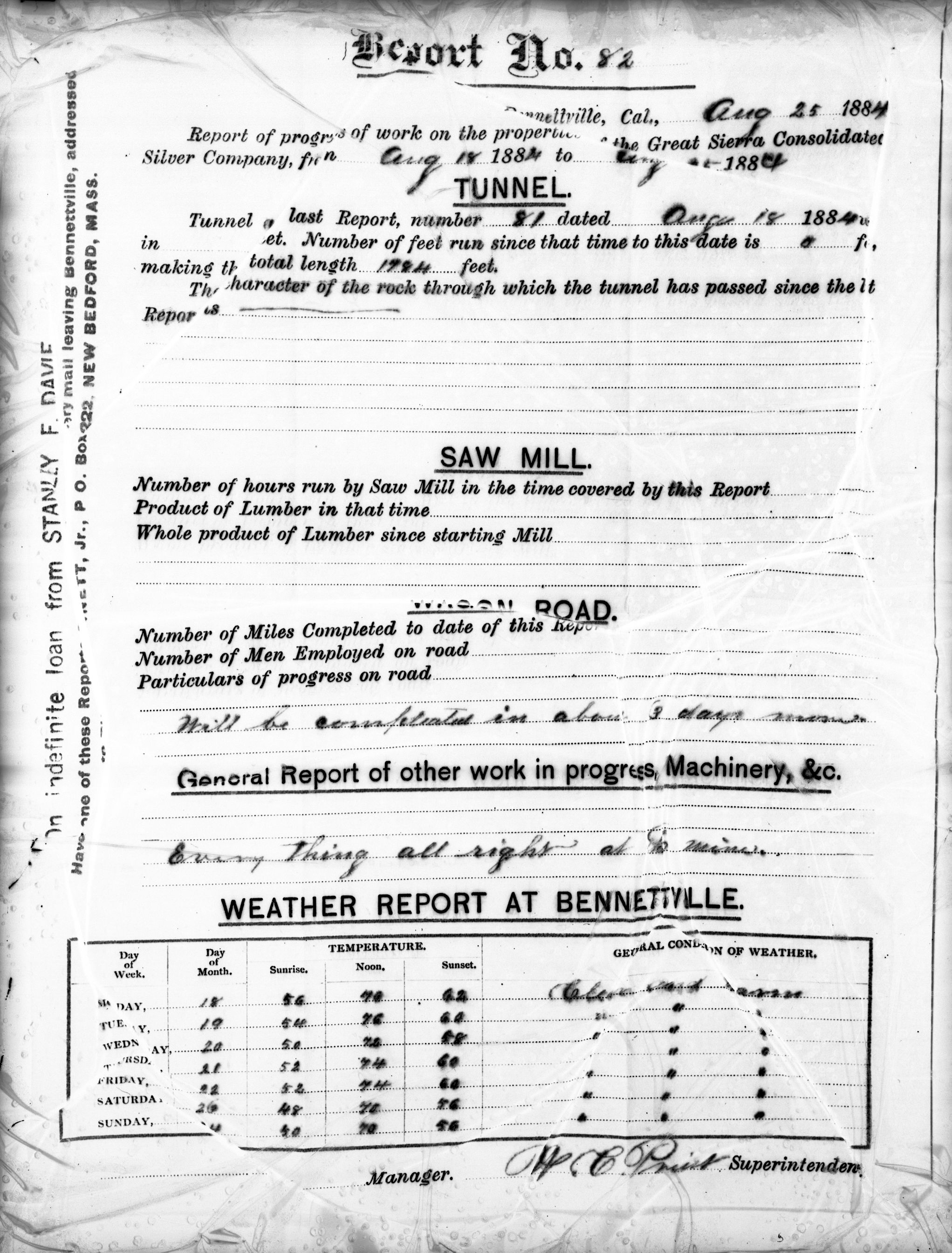 Document pertaining to the Tioga Mines. Originals in the Yosemite collection. See also RL-13,131-13,145.