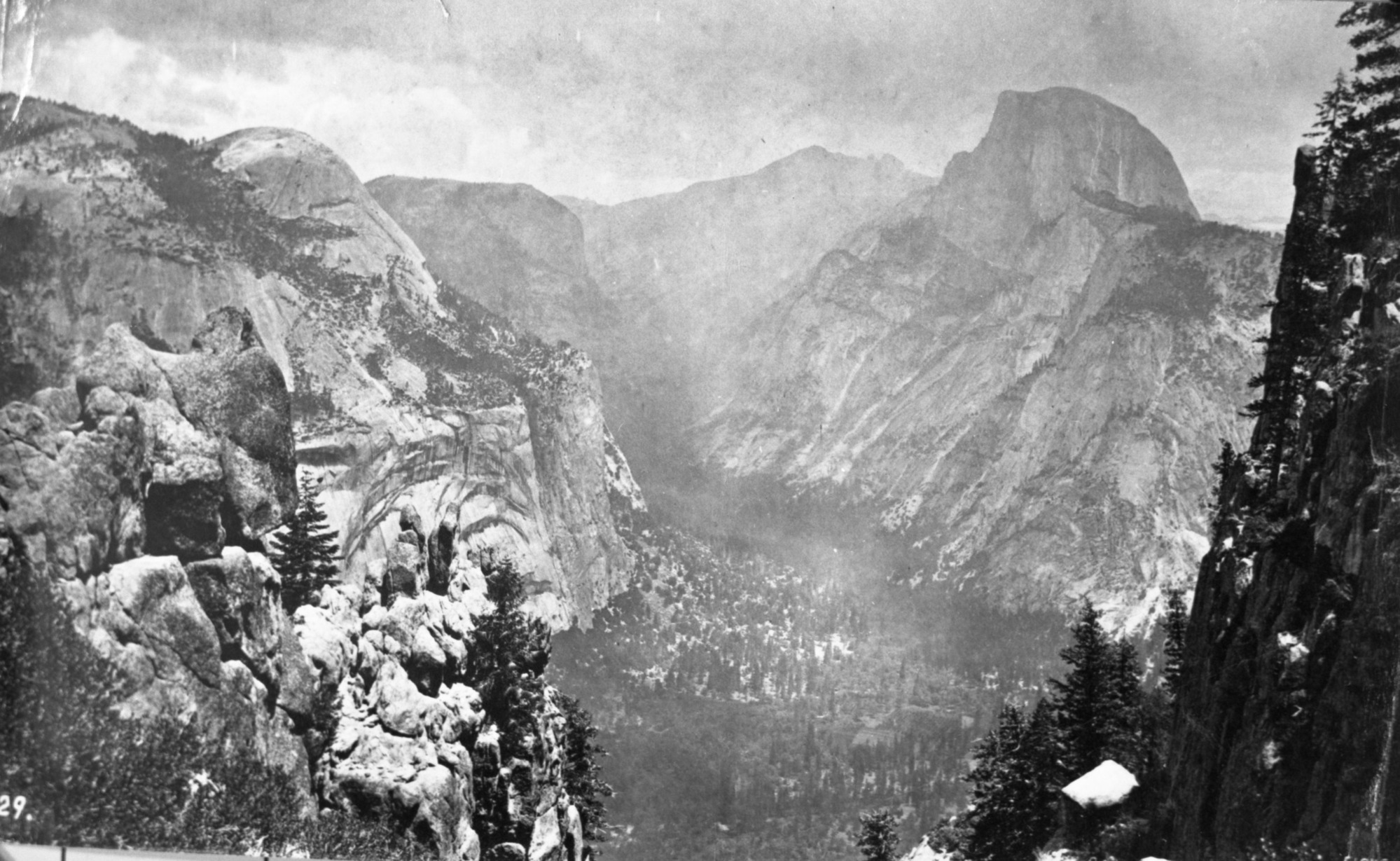 Glacier Point cliff and Yosemite Falls from Sierra Pt. (positive reproduced backwards)-Nahan; Job No. 103
