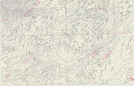 One section of a topographic map of Yosemite National Park featuring the Rancheria Mountains with red markings