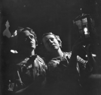 Mrs. Russell White and Mrs. Ralph Anderson in peasant chorus of Bracebridge pageant. Copy Neg: L. Radanovich, 8/94.
